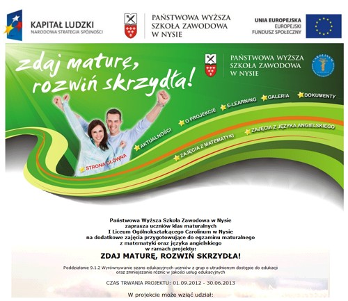 Zadania Biura ProjektówProgramy Fundacji na Rzecz Nauki PolskiejFundusze strukturalneProgramy OperacyjneProjekty zrealizowane przez PWSZ w NysieCzas na innowacje OpolszczyznoPraktyka na miarę XXI wiekuEdukacja bez porażekSiS OpolszczyznyNauka nie musi być nudnaPrzyroda - poznaję, szanuję, chronię (edycja II)Czysty świat wokół nasRemont hali sportowej PWSZ w Nysie przy ulicy Głuchołaskiej i przystosowanie obiektu dla osób niepełnosprawnychWyposażenie sal dydaktycznych...Zdaj maturę, rozwiń skrzydłaNauka i Biznes współpraca w praktyceNauka i Biznes razem - dobry staż szansą innowacji IIZ uczelni do biznesuZainwestuj w szkoleniaNauka i Biznes współpraca w praktyce IINyska Akademia MaturzystyNyski Uniwersytet GimnazjalistyPrzyroda - poznaję, szanuję, chronięNowe kierunki kształcenia w PWSZ w Nysie"Kreator innowacyjności-wsparcie..." Skarby z odzyskuE-SENIOR w gminie NysaPotrafię ratować twoje życieNadanie nowych funkcji terenom zdegradowanym - budowa obiektu dydaktyczno administracyjnego PWSZ w Nysie Zróbmy coś razem - PWSZ w Nysie i sektor MŚPPodniesiesz kwalifikacje - zdobędziesz pracę!Aktualizacja kwalifikacjiNyska Kuźnia Młodych TalentówDobry staż szansą innowacji w Twoim przedsiębiorstwieI Ty możesz zostać przedsiębiorcąNyski Uniwersytet DziecięcyPotęga uczniaProjekty realizowane przez PWSZ w Nysie:Projekt 5.3.1 Dziedzictwo kulturowe i kultura RPOWO 2014-2020Schematom STOP! Wspólne działania instytucji pomocy społecznejProgram praktyki zawodowej w Państwowej Wyższej Szkole Zawodowej w NysieCiekawe linki"Projekt - Kompetencje Zawodowe Studentów"