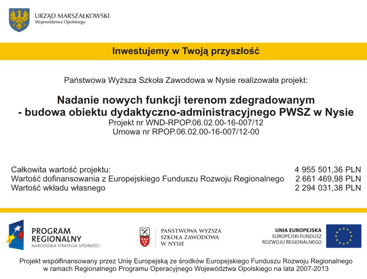 Tytuł projektu "Nadanie nowych funkcji terenom zdegradowanym budowa obiektu dydaktyczno administracyjnego PWSZ w Nysie "